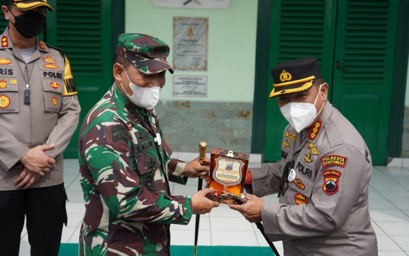 Komandan Korem 071/Wijayakusuma Kolonel Inf Dwi Lagan Safrudin, S.I.P., menerima kunjungan silaturahmi Kapolresta Banyumas yang baru Kombes Pol Muchamad Firman Lukmanul Hakim, S.H., S.I.K., M.Si., Kamis (21/01/2021) di Makodim 0701/Banyumas, Purwokerto.