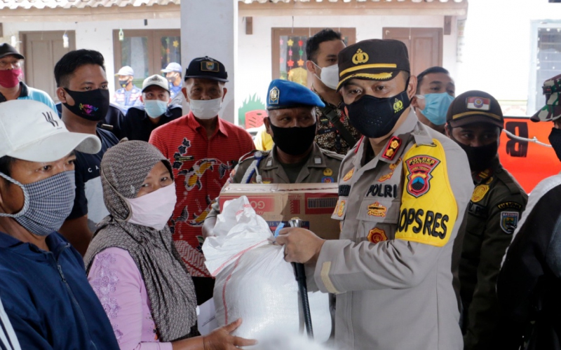 Bupati yang didampingi Komandan Kodim 0736/Batang dan Kapolres Batang AKBP Edwin Louis Sengka memberikan bantuan paket sembako dan tali asih pada keluarga ABK di Balai Desa Klidang Lor, Kamis (21/1/2021).