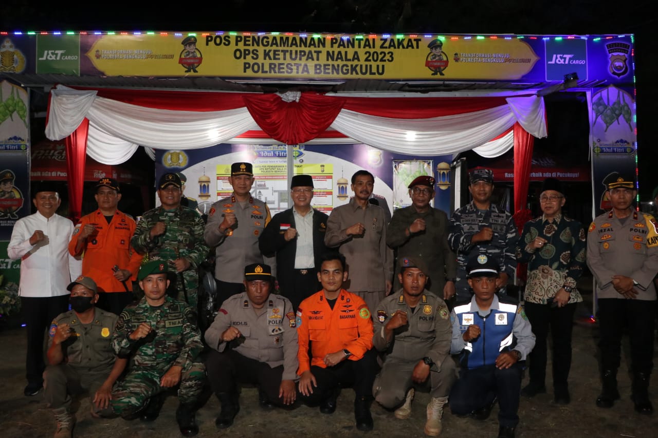 Bengkulu – Kapolda Bengkulu Irjen Pol Drs Armed Wijaya, bersama Gubernur Bengkulu Rohidin Mersyah dan unsur Forkopimda Provinsi Bengkulu memantau langsung Pos Pengamanan (Pospam) dan Pos Pelayanan (Posyan) pada Jumat (21/4/2023) malam. Adapun, Pospam dan Posyan yang menjadi sasaran pemantauan adalah pos di Pantai Panjang dan Pantai Zakat.