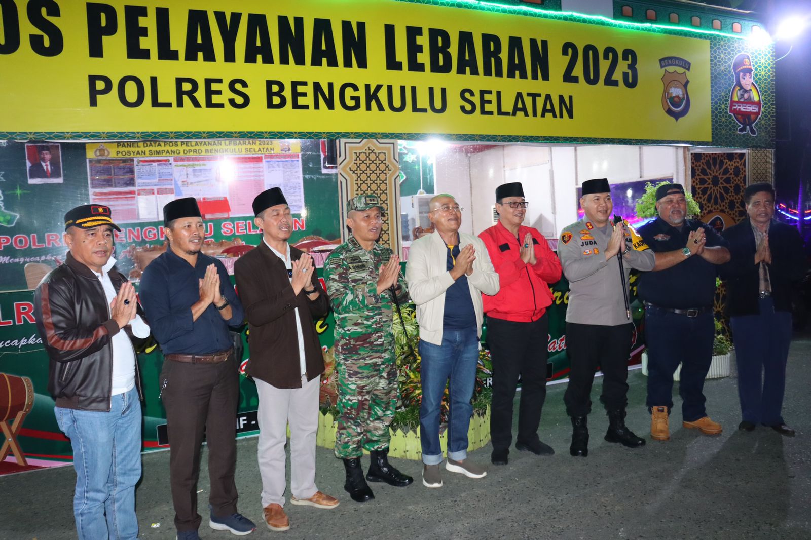 Bengkulu Selatan – Menjelang Hari Raya Idulfitri 1444 H Tahun 2023, Kapolres Bengkulu Selatan Polda Bengkulu AKBP Juda T Tampubolon, bersama Forkopimda Kabupaten Bengkulu Selatan dan Para PJU Polres Bengkulu Selatan melakukan pengecekan Pos Pengamanan dalam rangka Operasi Ketupat Nala Tahun 2023, Jumat (21/4/2023).