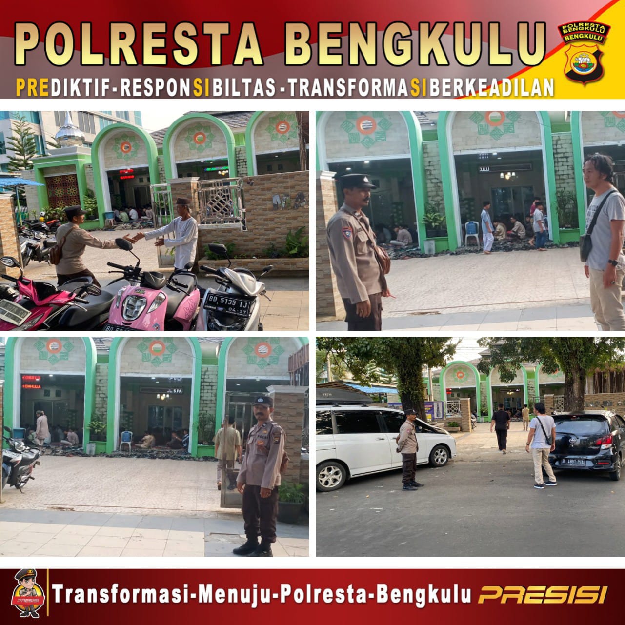 Kepolisian Resor Kota Bengkulu menerjunkan personelnya melaksanakan Pengamanan di masjid-masjid dan lokasi digelarnya Sholat Idul Fitri 1444 H/2023 dalam wilayah Kota Bengkulu. Sabtu (22/04/23) pagi.