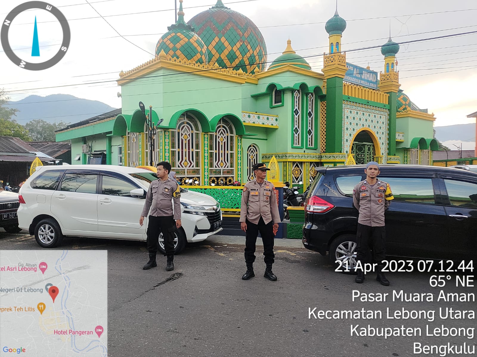 Lebong – Personel Polsek Lebong Utara Polres Lebong Polda Bengkulu melaksanakan kegiatan pengamanan pelaksanaan ibadah Salat Idulfitri 1444 Hijriah di Masjid Muhammadiyah Kelurahan Pasar Muara Aman Kabupaten Lebong, Jumat (21/4/2023) pagi.