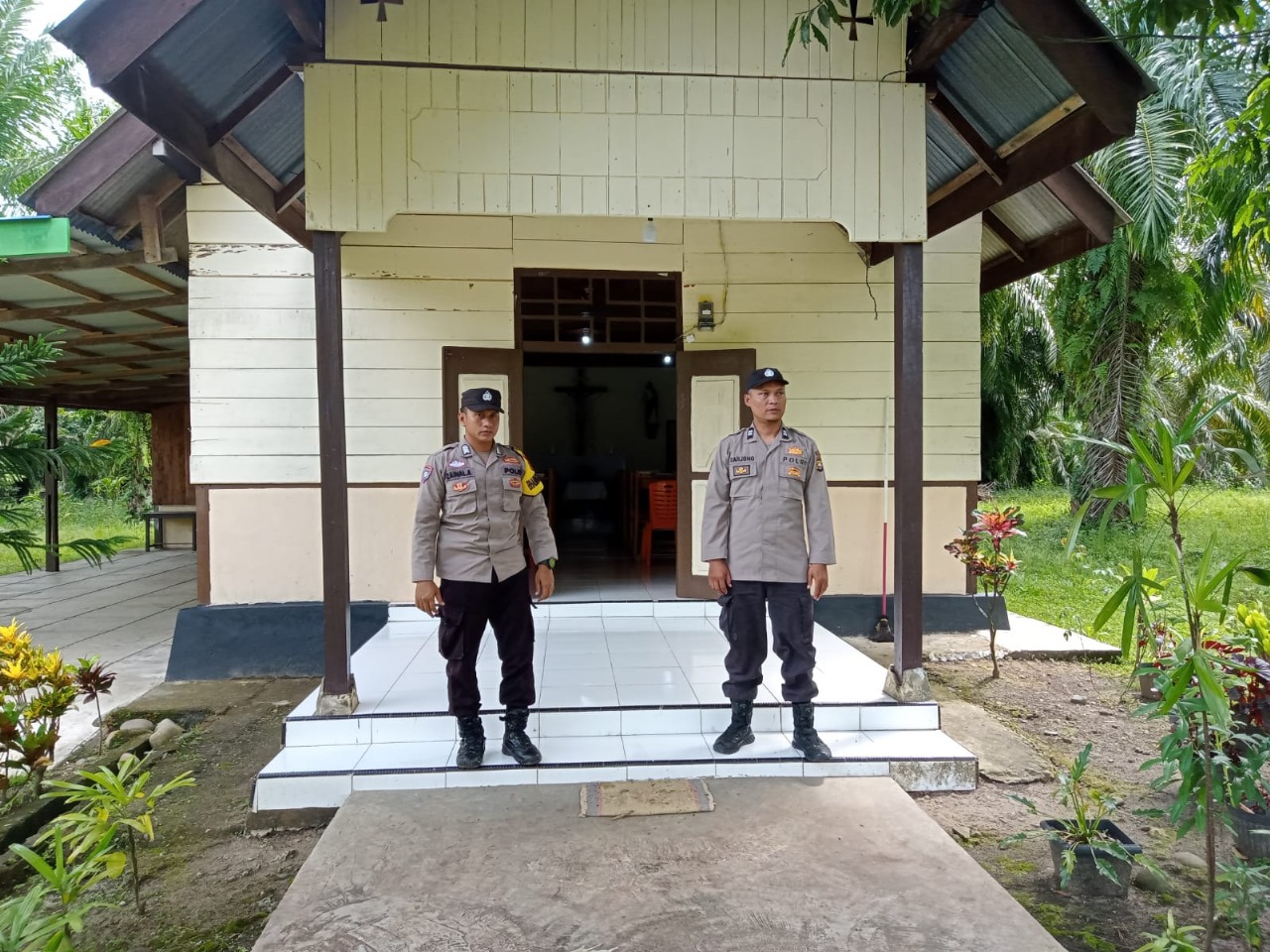 Kaur – Personel Polsek Maje Polres Kaur Polda Bengkulu, Aiptu Wahyu Handoko berserta Aiptu Leza, Brigpol Buslan, Bripka Angga, dan Brigpol Willian melaksanakan Pengamanan Gereja di Desa Parda Suka Bakal Kecamatan Maje Kabupaten Kaur, Minggu, (21/04/2024), Pukul 10.00 Wib. s/d 13.00 Wib.