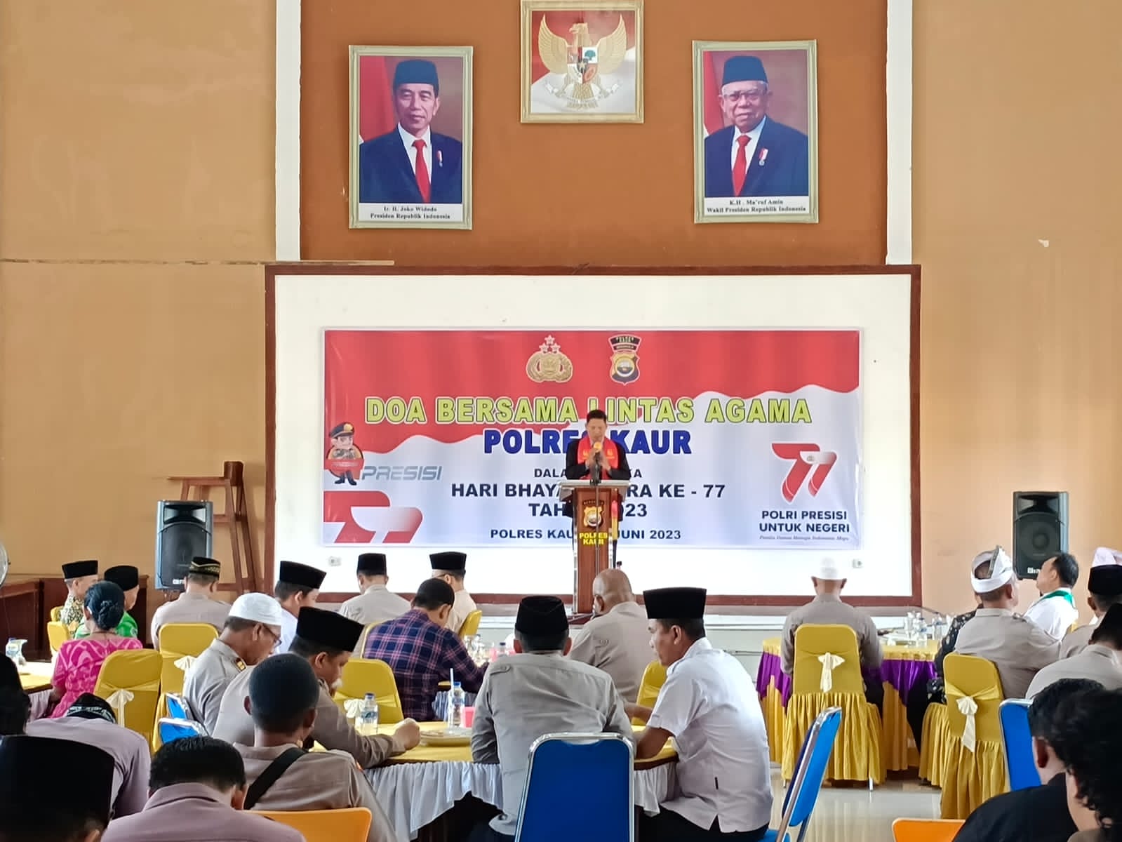 Kaur – Dalam rangka menyambut HUT Bhayangkara ke-77 tahun 2023 serta menyambut tahun Pemilu 2024 Polres Kaur Polda Bengkulu, melakasanakan Doa bersama lintas agama, Kamis (22/06/2023).