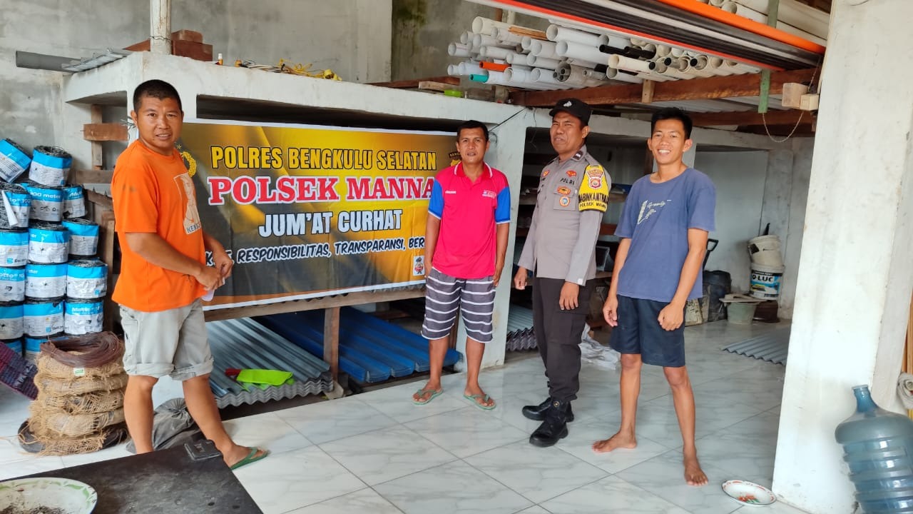 Kapolsek Manna Iptu Asep Syahmaulana, S. Ikom MH melalui Bhabinkamtibmas Polsek Manna Bripka Erlian, S. IP mendengarkan langsung beragam keluhan yang disampaikan masyarakat dan pada kesempatan tersebut, Bhabin mengajak masyarakat untuk selalu menjaga kamtibmas, demi rasa aman dan nyaman.