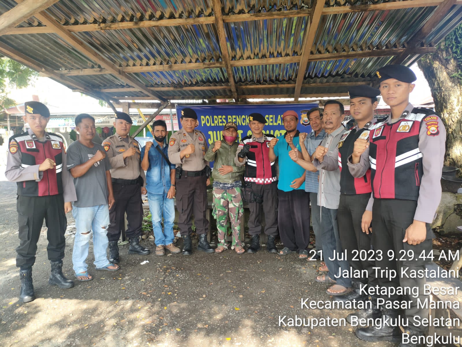 Kapolres Bengkulu Selatan AKBP Florentus Situngkir, S.I.K., diwakili oleh Kasat Binmas Iptu Kusyadi S.H., M.Si., dan Kasat Samapta Iptu Surya melaksanakan Jumat Curhat di Pasar Ampera, Jalan Trip Kastalani Kelurahan Ketapang Besar Kecamatan Pasar Manna Kabupaten Bengkulu Selatan, dalam rangka menerima langsung tanggapan dan keinginan masyarakat terhadap Kepolisian.