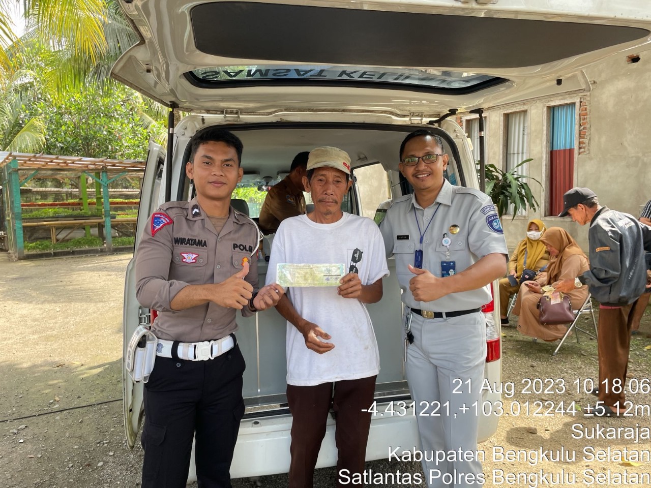 Bengkulu Selatan – Personel Polres Bengkulu Selatan Polda Bengkulu, Bripda Wiratama Luke.F, bersama petugas Jasa Raharja dan UPTD Samsat lainya melaksanakan pelayanan Samsat keliling di wilayah Kecamatan Kecamatan Seginim dan Air Nipis Kabupaten Bengkulu Selatan, Senin (21/08/23).