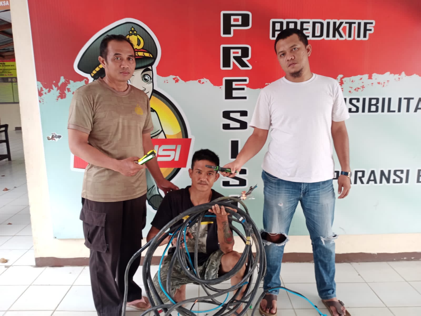 Turut diamankan 5 potongan kabel power tower Indosat dan 1 buah tang.