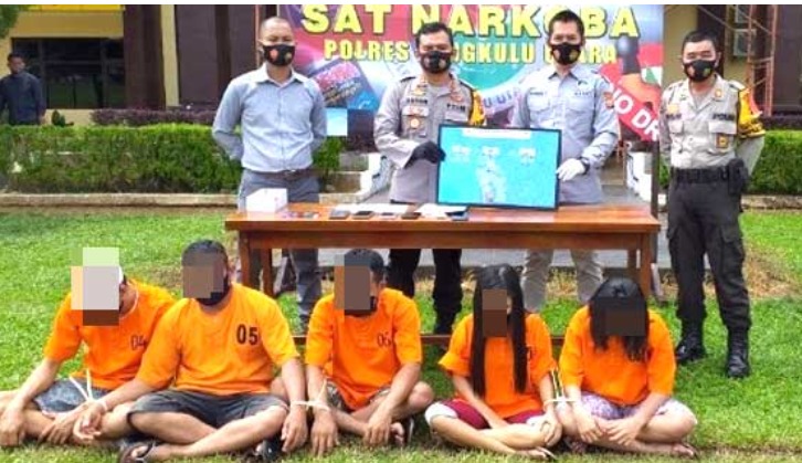 “Kelima terduga pelaku penyalahgunaan narkotika ini ditangkap pada tanggal Kamis (17/09/2020) sekira pukul 00.30 WWIB, di Pantai Muara Desa Urai, Kecamatan Ketahun, Kabupaten Bengkulu Utara,” ucap Kasat Narkoba, Iptu Rahmat.
