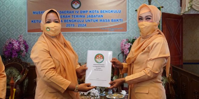 Bengkulu, Siberindo.co – Dharma Wanita Persatuan (DWP) Kota Bengkulu menggelar musyawarah daerah (Musda) IV dan serah terima jabatan (sertijab) Ketua DWP Kota Bengkulu masa bakti 2019-2024. Kegiatan ini berlangsung di Balai Kota, Selasa (22/9/2020).