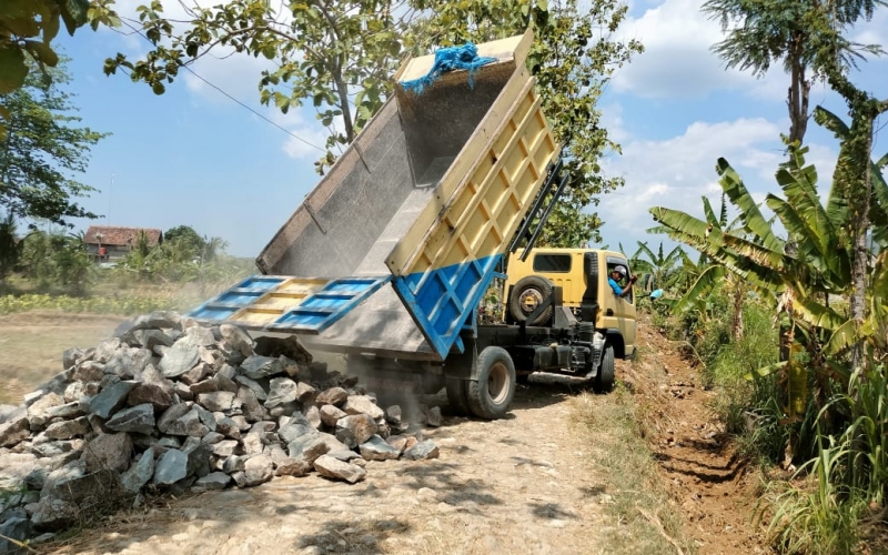 Rembang – Selasa 21 September 2021 pelaksanaan kegiatan Tentara Manunggal Membangun Desa ( TMMD ) Reg -112 di Desa Trembes kecamatan Gunem, kabupaten Rembang sudah berjalan satu Minggu material bangunan terus didatangkan demi terselesaikan pengerjaan fisik talut dan jalan makadam.