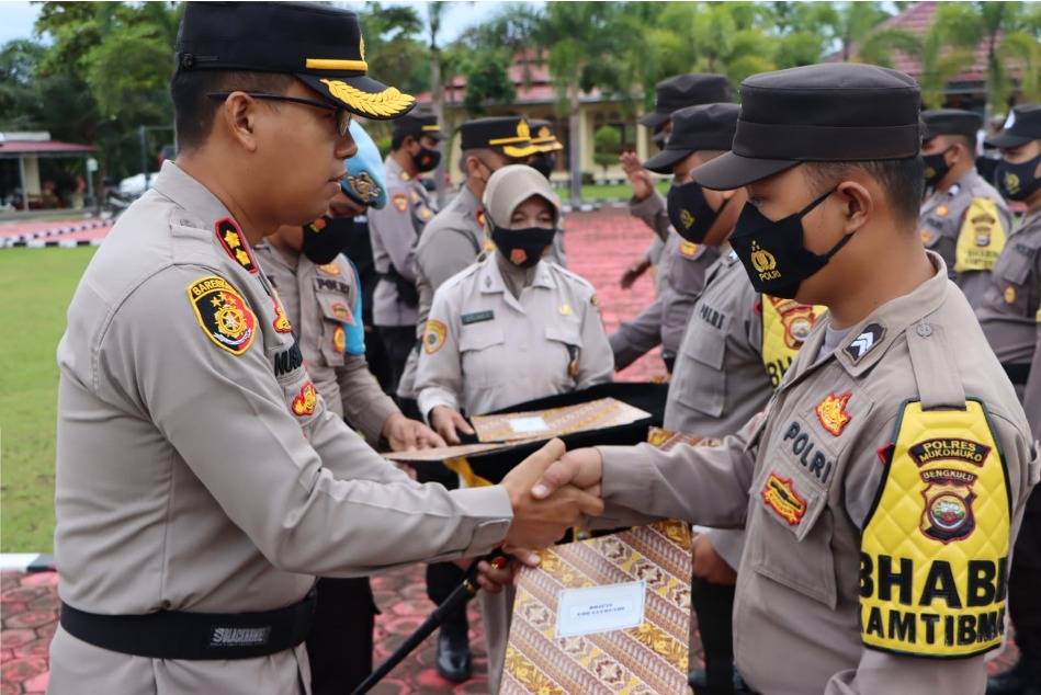 “Dengan diberikannya reward ini, saya berharap agar semua anggota Polres dan Polsek jajaran yang ada dan hadir saat ini mampu menjadikan ini sebagai motivasi untuk mendukung polri khususnya polres Mukomuko dalam menjaga situasi kamtibmas di Kabupaten Mukomuko,” ucapnya.