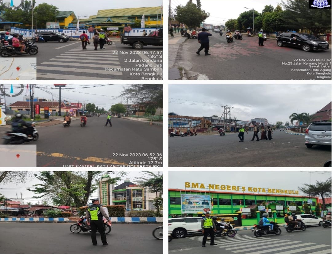 Patroli ini dilaksanakan di depan SMK 1 Kota Bengkulu, dEPAN smpn 02 Kota Bengkulu, Simpang Kemang Manis, Depan SMPN 01, SD IT Rabani, dan SMAN 05 Bengkulu.