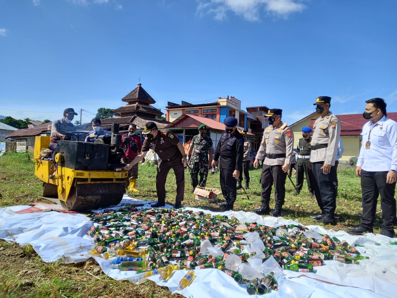 Bengkulu, Siberindo.co – Kapolres Rejang Lebong Polda Bengkulu AKBP Tonny Kurniawan, SIK bersama dengan forkopimda Jumat (22/4/2022) menghancurkan ratusan botol minuman keras (Miras) menggunakan alat berat di belakang Mapolres Rejang Lebong.