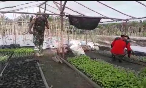 Seruyan-Guna mendukung pemerintah mewujudkan ketahanan pangan di masa pandemi Covid-19, Koramil 1015-16/Hanau membangun demplot pertanian yang berada di Desa Pembuang Hulu I, Pembangunan demplot untuk komoditas tanaman tanaman buah buahan lokal berupa cabai, melon dan semangka.Minggu(23/05)