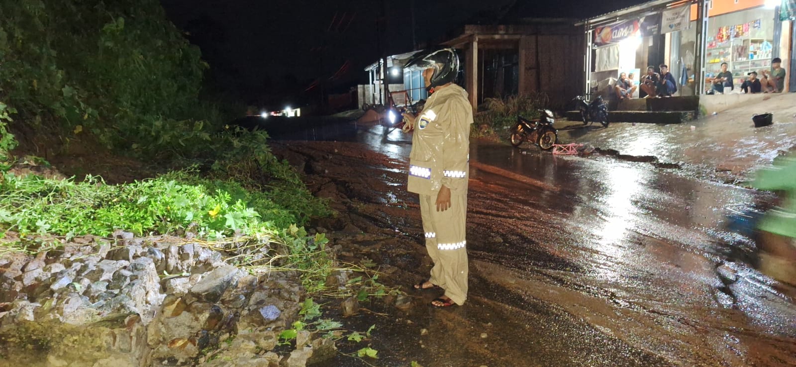 Lanjutnya, longsor yang menimpa tepi jalan tersebut sekitar 6 meter, lebar 2 meter dan tinggi 50 CM.