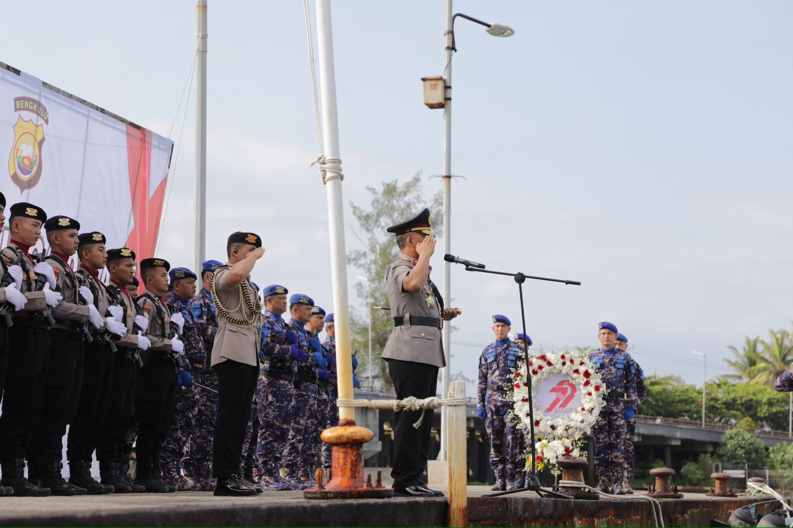 Bengkulu, 23 Juni 2025 – Dalam rangka memperingati Hari Ulang Tahun (HUT) ke-79 Bhayangkara, Kepolisian Daerah Bengkulu melaksanakan Upacara Tabur Bunga yang berlangsung di Dermaga Direktorat Polisi Perairan dan Udara (Ditpolairud) Polda Bengkulu, Senin (23/06/2025).