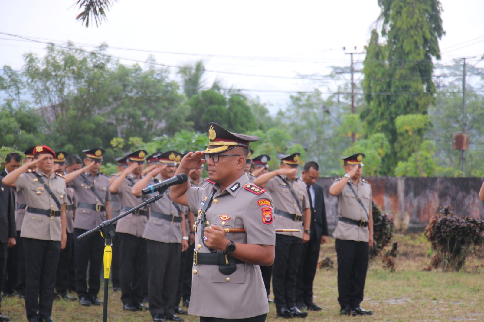 Bertindak selaku Perwira Upacara yakni Kasat Samapta IPTU Hasan Basri S,H dan Komandan Upacara IPDA Ferizan Ahmad, SH.