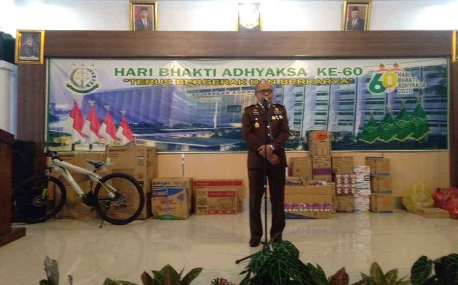 Tema yang diusung dalam peringatan Hari Bhakti Adhyaksa ke-60 tahun 2020 ini adalah Terus Bergerak dan Berkarya. Diselenggarakan secara khusus dan sederhana, disampaikan Kajari diharapkan suasana ini dapat meningkatkan silaturahmi Kejari dengan seluruh elemen.
