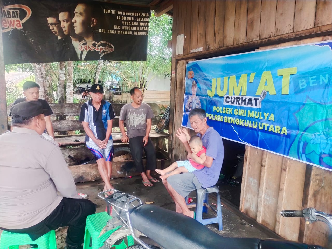 Bengkulu Utara – Personel Polsek Giri Mulya Polres Bengkulu Utara Polda Bengkulu, Bripka Anton Rudolf Marpaung, S.H., melaksanakan kegiatan Jumat Curhat di salah satu bengkel warga Bapak Dodo di Desa Giri Mulya Kecamatan Giri Mulya pada pagi Jumat (21/07/2023).