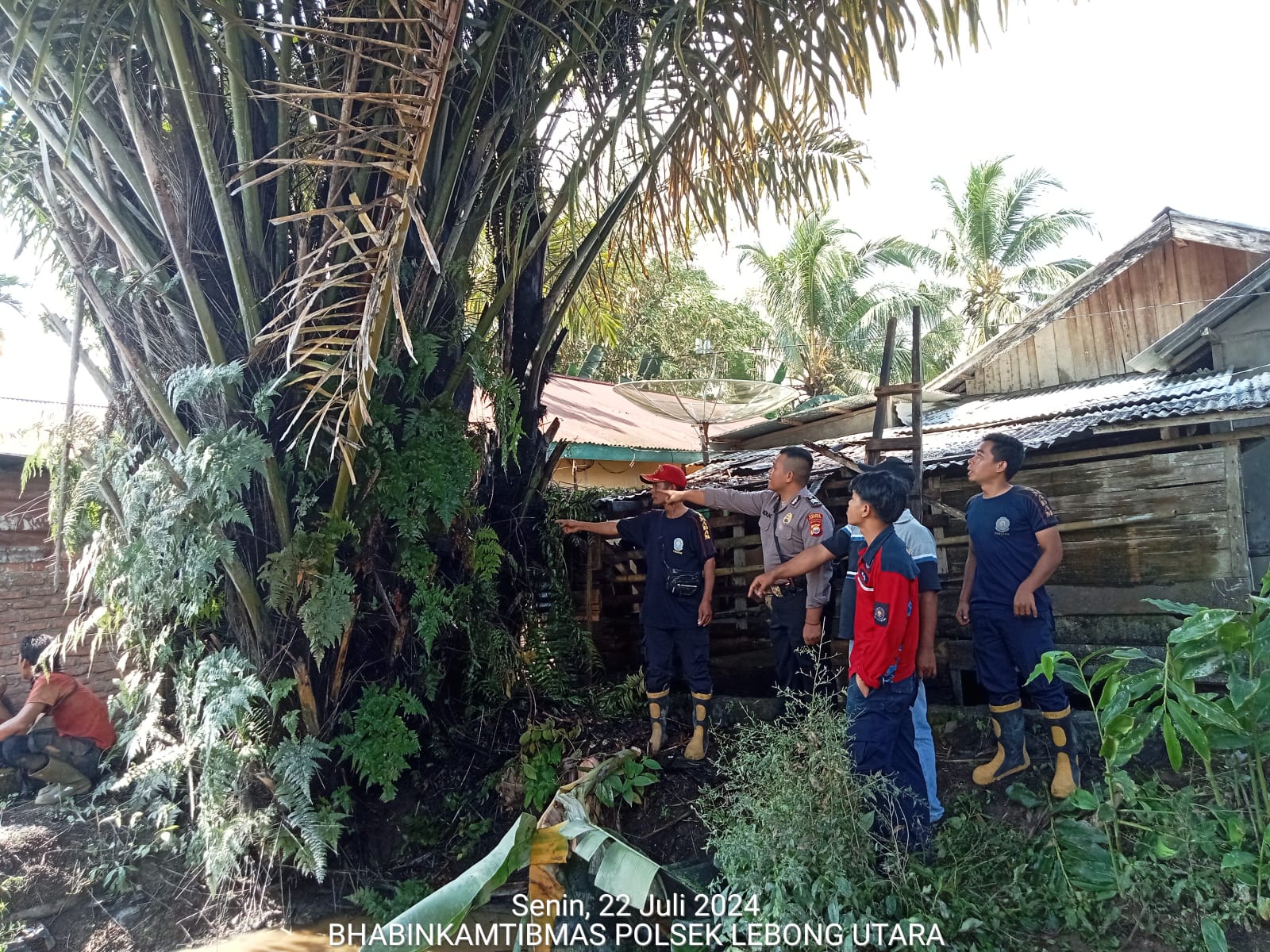 Lebong – Bhabinkamtibmas Polsek Lebong Utara Polres Lebong Polda Bengkulu, Brigpol Adi Kurniawan, mendatangi TKP kebakaran pohon aren di Desa Nangai Tayau, Senin (22/7/2024).
