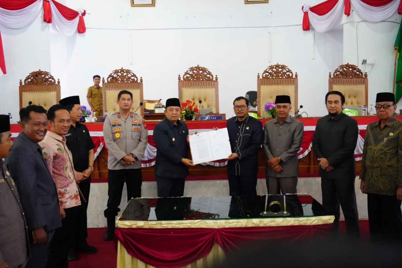 Seluma – Selasa (22 Agustus 2023) pukul 12.30 WIB, bertempat di Ruang Rapat Paripurna DPRD Kabupaten Seluma jalan Pematang Aur Kelurahan Talang Saling Kecamatan Seluma Kabupaten Seluma, Kapolres Seluma AKBP Arif Eko Prastyo, S.I.K., M.H., menghadiri kegiatan Rapat Paripurna dengan agenda kesepakatan bersama antara pemerintah daerah dengan DPRD kabupaten Seluma tentang Kebijakan Umum Anggaran (KUA) dan Prioritas Pelapon Anggaran Sementara (PPAS) APBD Perubahan Kabupaten Seluma Tahun 2023.