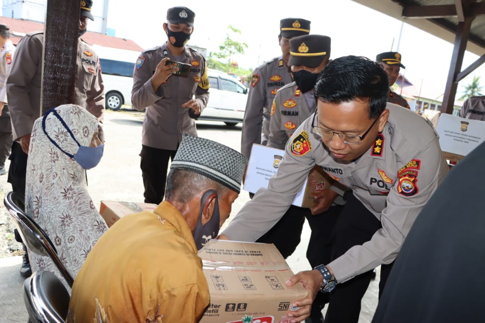 Menutup acara, Kapolres Mukomuko kemudian membagikan paket bahan pokok untuk warga yang terdampak kenaikan harga BBM (Bahan Bakar Minyak).