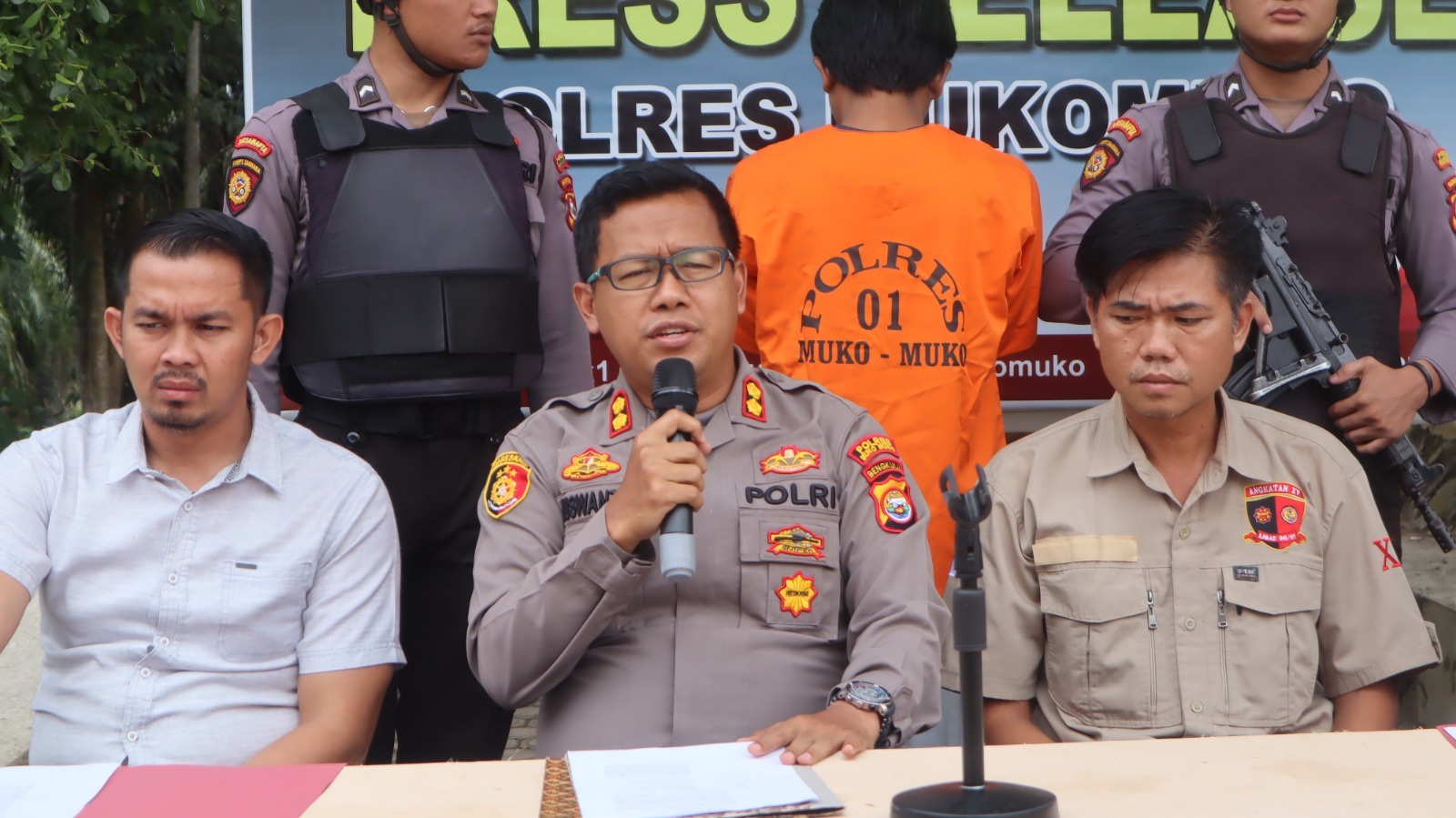Kapolres Mukomuko Polda Bengkulu AKBP Nuswanto didampingi Kasat Reskrim Iptu Fajri Ameli Putra saat press release di Mapolres, Jumat (22/9/2023) menerangkan, tersangka SW dalam melancarkan aksinya ditemani oleh satu terduga pelaku berinisial ST, yang saat ini masih buron.