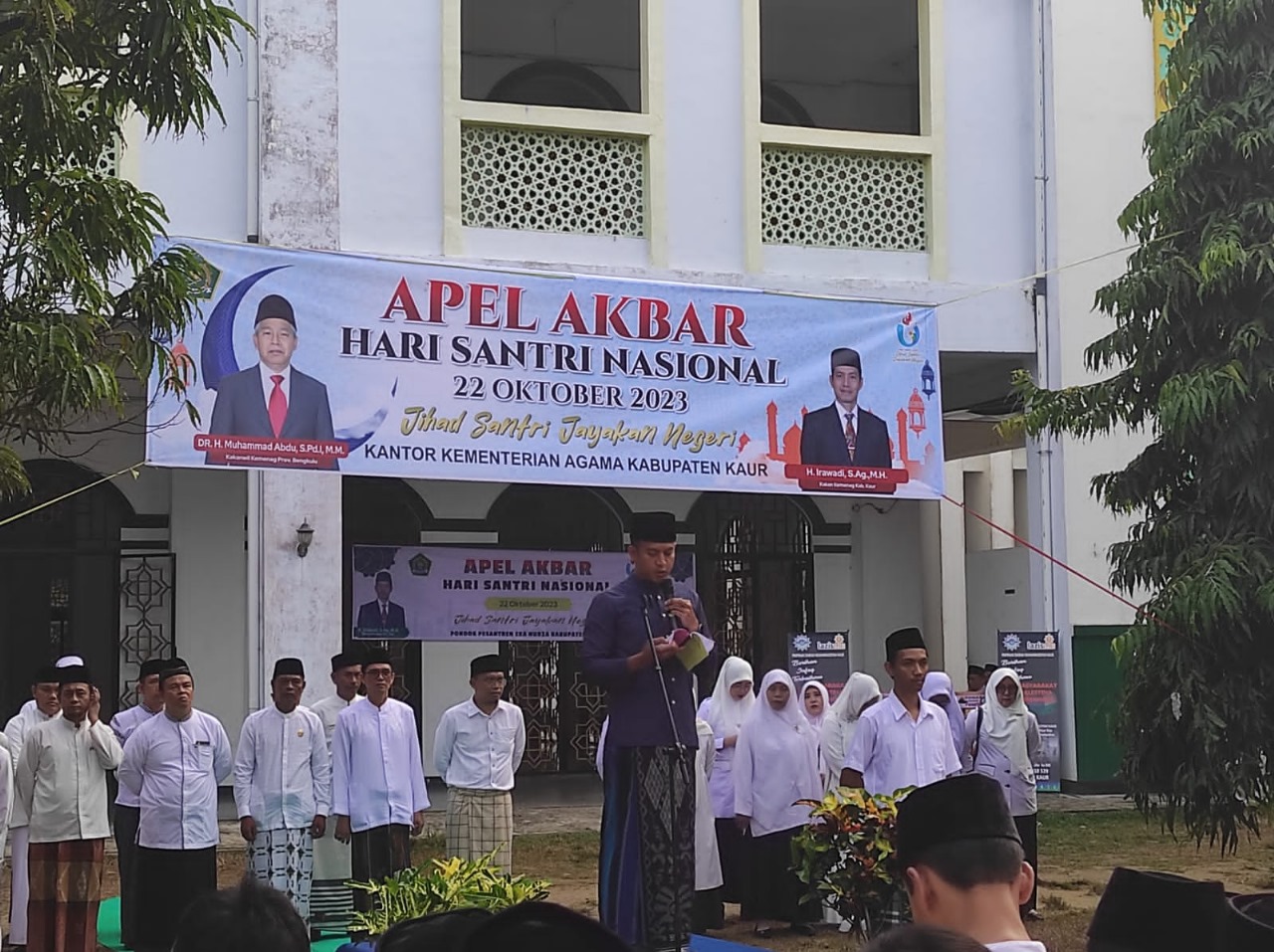 Apel akbar hari santri yang dipimpin oleh Kapolres Kaur ini mengangkat tema Jihad Santri Jayakan Negeri.