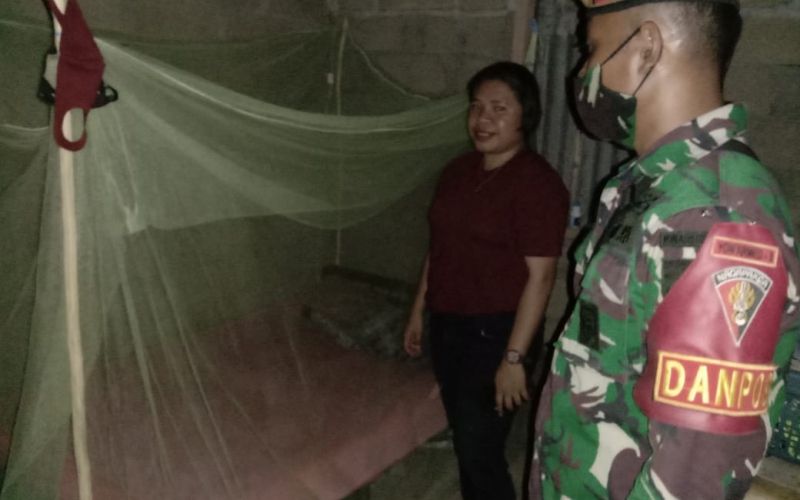 “Setelah kami bagikan kelambu-kelambunya kemudian juga kami pastikan satu per satu antar rumah untuk segera dipasang selain itu juga kami bagikan obat-obatan secara door to door kepada masyarakat”, ucap Danpos.