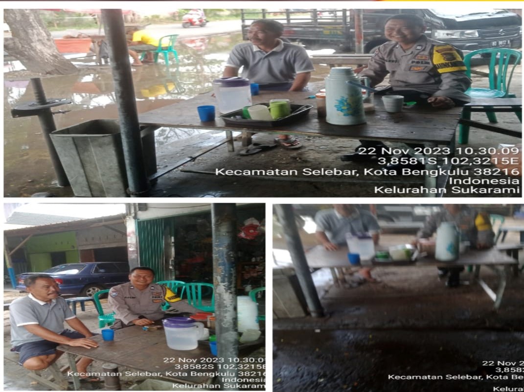 Bengkulu – Guna untuk lebih mengetahui situasi dan kondisi yang ada di kelurahan binaanya, Bhabinkamtibmas Polsek Selebar Polresta Bengkulu Polda Bengkulu, melaksanakan giat sambang dialogis ke Wilayah binaannya di Jalan Pancur Mas Kelurahan Sukarami kecamatan Selebar Kota Bengkulu, Rabu (22/11/2023).
