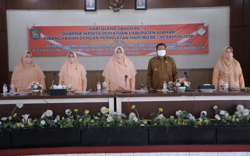 Dharma Wanita Kabupaten Asahan menggelar Rapat Koordinasi (Rakornis) yang dirangkai dengan peringatan HUT ke-21 Tahun Dharma Wanita Persatuan dan Hari Ibu ke-92 Tahun 2020 di Pendopo Rumah Dinas Bupati Asahan, Selasa (22/12/2020).