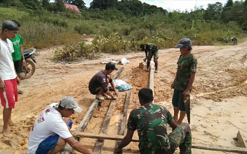 Dalam rangka menyambut Natal dan tahun baru 2021, Pos Nanga Bayan Satgas Pamtas RI-MLY Yonif 407/PK bersama warga melaksanakan karya bhakti perbaikan jalan serta parit depan Gereja Nasrani (GPSK) jemaat PNIEL Desa Nanga Bayan Kecamatan Ketungau Hulu Kabupaten Sintang, Kalbar.
