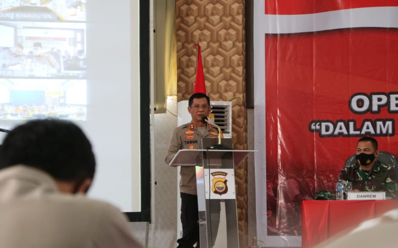 Kegiatan tersebut dipimpin langsung oleh Kapolda Bengkulu dan juga turut hadir Wakapolda Bengkulu, Wakil Gubernur Provinsi Bengkulu, Ketua DPR Provinsi Bengkulu, Perwakilan dari Danrem 041 gamas,Danlanal Provinsi Bengkulu, Kajati Provinsi Bengkulu , KABINDA, IRWASDA, Para PJU Polda Bengkulu, Para Kapolres melaui video conference, Unsur Forkopimda Provinsi Bengkulu dan kabupaten, serta Kepala Dinas dari unsur pemerintah terkait.