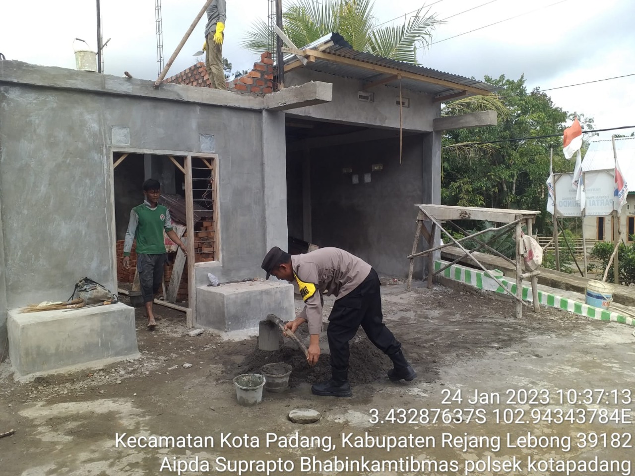 Dalam kegiatan sambang tersebut, Aipda Suprapto juga membantu warga yang sedang merehap rumah, sekaligus melakukan koordinasi, menyampaikan imbauan Kamtibmas kepada masyarakat.