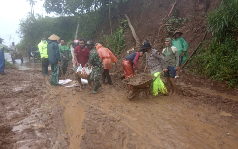 Menurut keterangan Serka Purnomo salah satu anggota Koramil 0718-14/Gunungwungkal tebing yang berada di dekat perkebunan warga longsor dan matrial tanah menutup sebagian jalan Desa Giling sehingga apabila tidak segera dibersihkan dapat membahayakan warga setempat pada saat melintas karena jalan menjadi licin tertutup tanah.