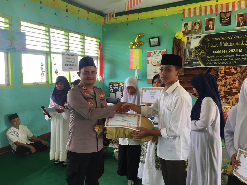 Bengkulu, Siberindo.co – Kapolsek Lebong Atas Polres Lebong Polda Bengkulu, Iptu Ali Khan, mengikuti kegiatan peringatan Isra Mikraj di SMP 02 Lebong, Jumat (24/2/2023) pagi.