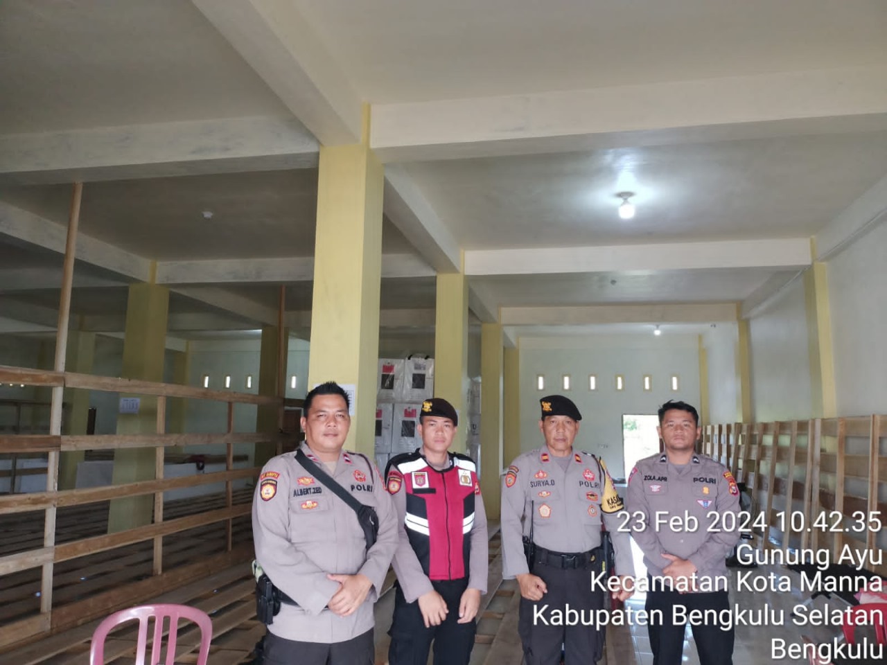 Bengkulu Selatan – Sat Samapta Polres Bengkulu Selatan Polda Bengkulu, melaksanakan Patroli presisi, bentuk pelayanan Polri Kepada Masyarakat Guna Mewujudkan Kamtibmas yang Kondusif di seputaran kantor penyelenggara pemilu serentak Tahun 2024 dan lokasi keramaian di Kecamatan Kota Manna, Pasar Manna, dan Pino Raya kabupaten Bengkulu Selatan, Jumat (23/02/2024).