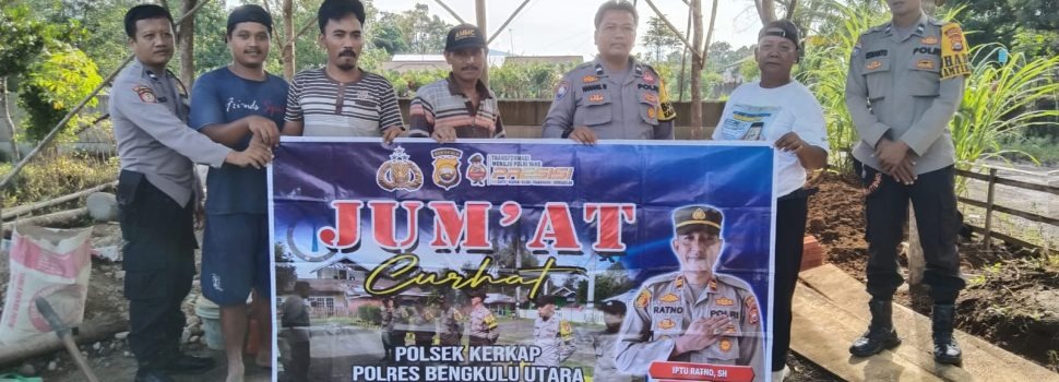 Bengkulu Utara – Bhabinkamtibmas Polsek Kerkap Polres Bengkulu Utara Polda Bengkulu mendengarkan aspirasi masyarakat melalui program Jumat Curhat di halaman rumah warga Desa Serumbung, Kecamatan Kerkap, Kabupaten Bengkulu Utara, Jumat (24/3/23).