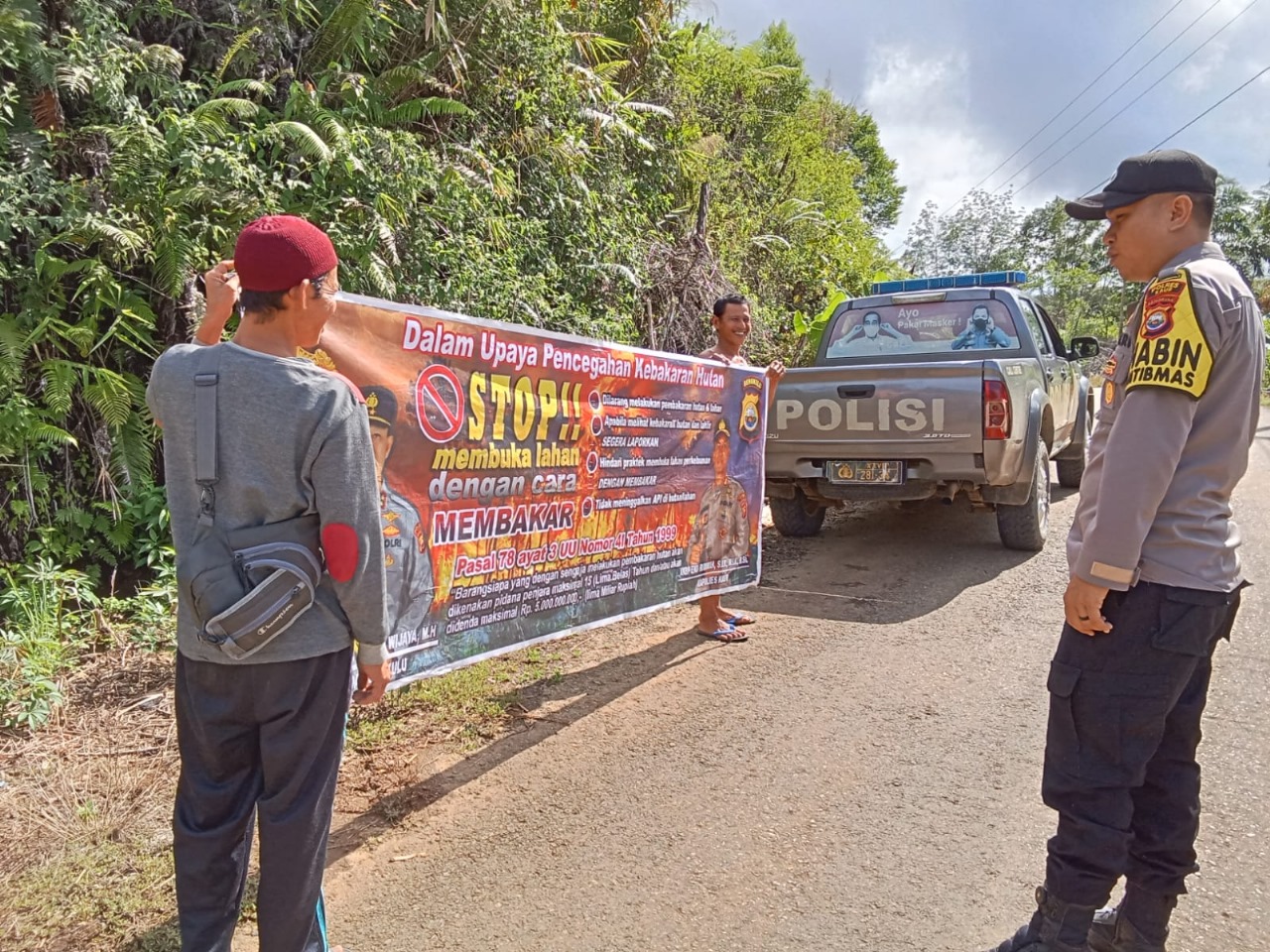 “Dilarang membuka atau membersihkan lahan dengan cara dibakar baik di sengaja ataupun dengan kelalaian, apabila tetap dilakukan maka akan terjerat Hukum Pidana,” ungkap Bhabnkamtibmas.