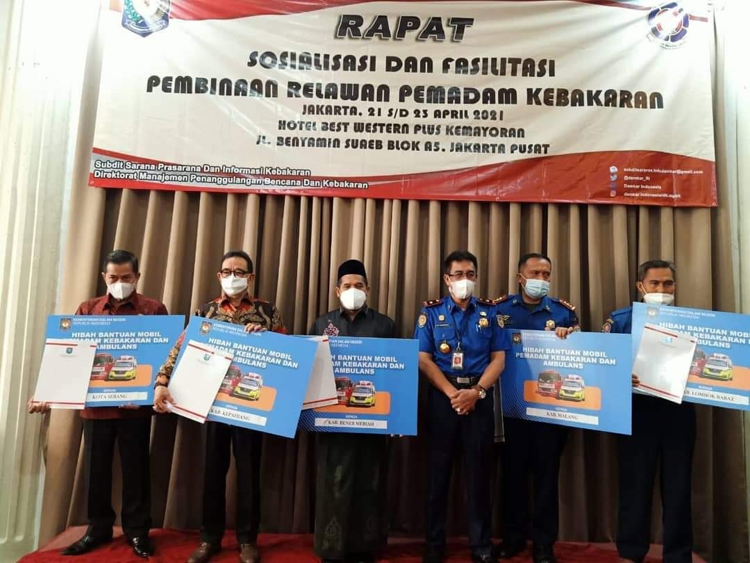 Bengkulu, Siberindo.co – Pemerintah Kabupaten Kepahiang mendapatkan bantuan dari pemerintah pusat. Yakni, Pemkab Kepahiang menerima hibah mobil pemadam kebakaran (damkar) dan ambulans dari Kementerian Dalam Negeri, penyerahan hibah langsung diterima Bupati Kepahiang pada Rapat Sosialisasi dan Fasilitasi Pembinaan Relawan Pemadam Kebakaran di Hotel Best Wetera Plus Kemayoran, Jakarta pada Kamis (22/4/21), kemarin.