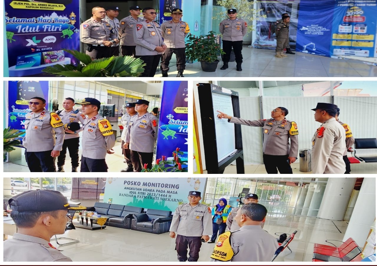 Bengkulu – Wakapolda Bengkulu Brigjen Pol Umardani mengecek Pos Pelayanan Lebaran di Bandara Fatmawati Sukarno Bengkulu, Senin (24/4/2023) pagi.