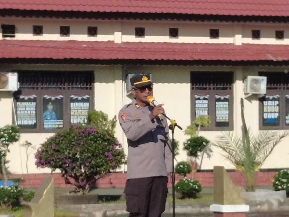 PS. Kasubagbinops IPTU.Yosep Hendratno.R menyampaikan Apel Gelar Pasukan dilakukan guna antisipasi terjadi hal-hal yang tidak di inginkan Pasca Pembacaan Putusan Sidang Sengketa perselisihan Hasil Pemilu (PHPU) Pilpres Dan Wapres RI Pada Pemilihan Umum Tahun 2024 di Kabupaten Kaur.