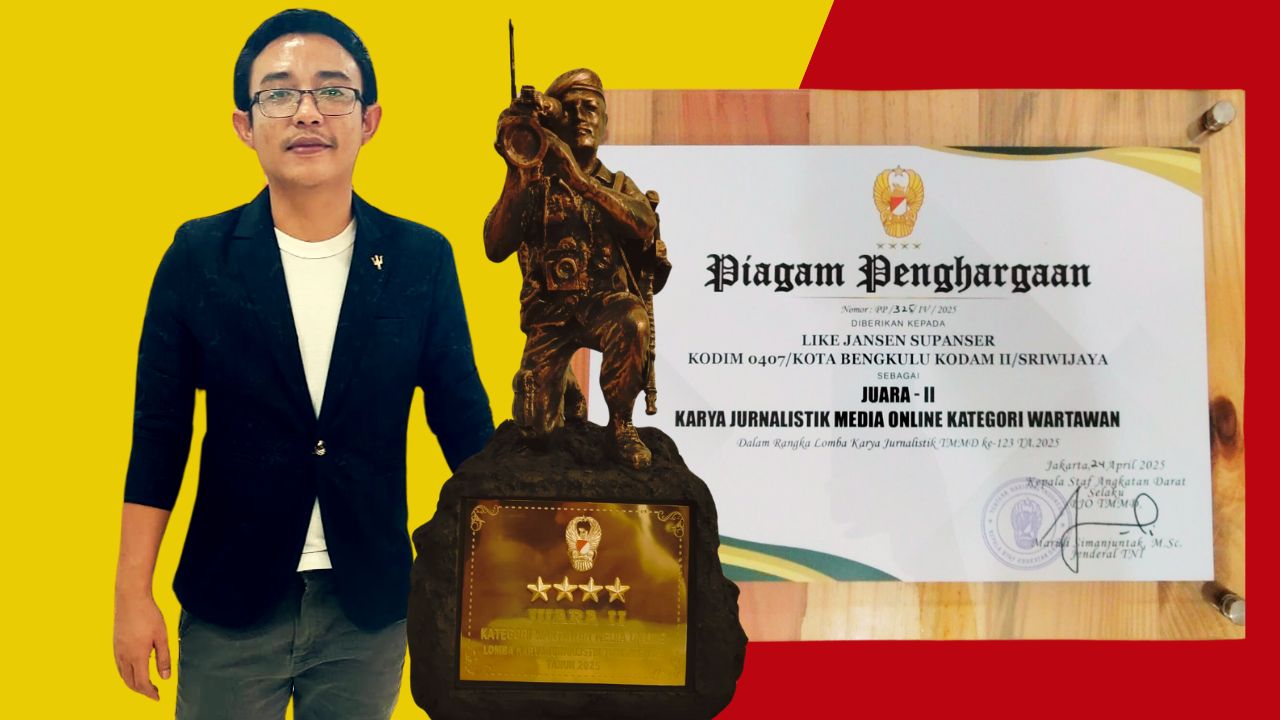 Siberindo.co, Bengkulu – Like Jansen Supanser meraih juara dua kategori wartawan media online pada Lomba Karya Jurnalistik (LKJ) TNI Manunggal Membangun Desa (TMMD) ke-123.
