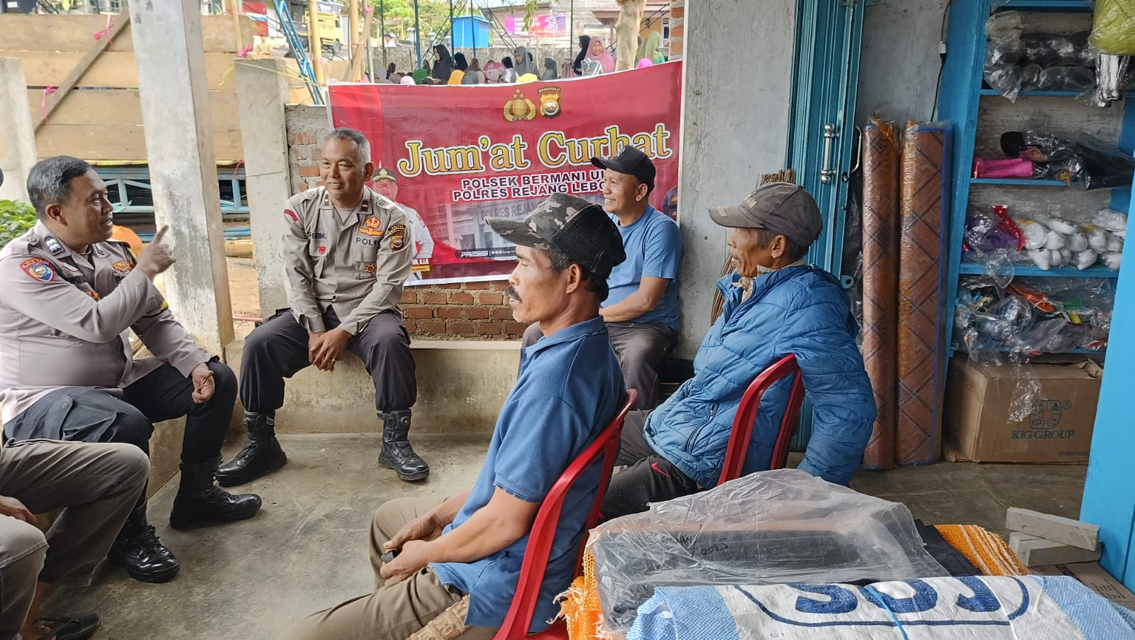 Bermani Ulu – Polsek Bermani Ulu Polres Rejang Lebong Polda Bengkulu Melaksanakan Jum’at Curhat bareng Kapolsek bersama Kanit Binmas IPDA F.SEMBIRING dan babinkamtibmas Polsek Bermani Ulu Aiptu SUPRIYANTO Di Ds. Pal 9 kec. Bermani Ulu Raya Kab. Rejang Lebong.