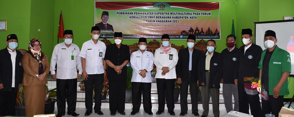 Pertemuan digelar di Kantor Kemenag Seluma, yang dikemas dalam acara Pembinaan Peningkatan Kapasitas Multikultural pada FKUB Kabupaten/Kota tahun anggaran 2021. Kegiatan mengambil tema, Kita jaga dan kokohkan moderasi dalam upaya peningkatan toleransi kehidupan beragama.