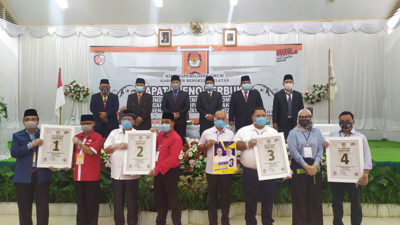 Bengkulu, Siberindo.co – Setelah sebelumnya menetapkan pasangan calon bupati dan wakil bupati, Komisi Pemilihan Umum (KPU) Bengkulu Selatan pada Kamis (24/9/2020) melakukan pleno pengundian nomor urut 4 pasangan calon bupati dan wakil bupati, bertempat di Gedung Pemuda Kota Manna.