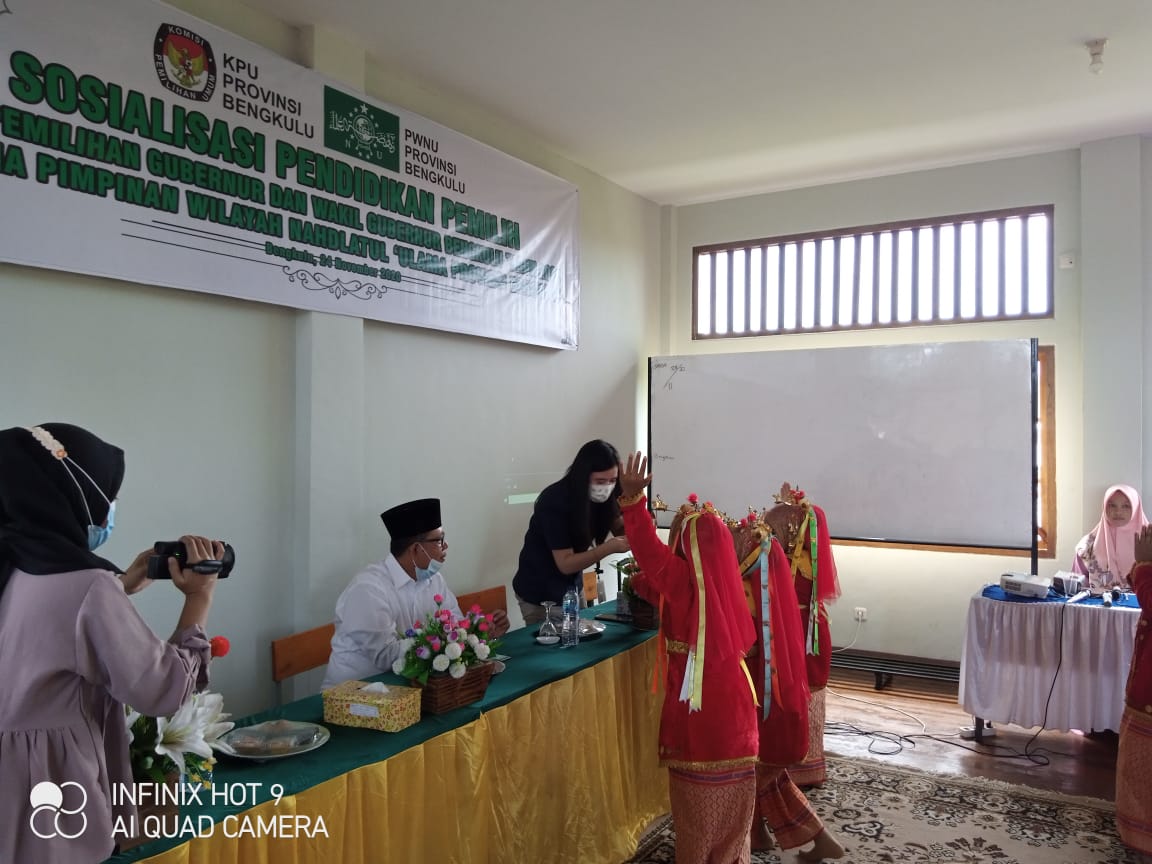 Siberindo.co – Pimpinan Wilayah Nahdlatul Ulama Provinsi Bengkulu bekerjasama dengan Komisi Pemilihan Umum (KPU) Provinsi Bengkulu, menggelar kegiatan sosialisasi pendidikan pemilih, dalam Pilkada Gubernur dan Wakil Gubernur Bengkulu tahun 2020. Kegiatan ini dilaksanakan di Pesantren Nurul Huda Kota Bengkulu, Selasa (24/11/2020).