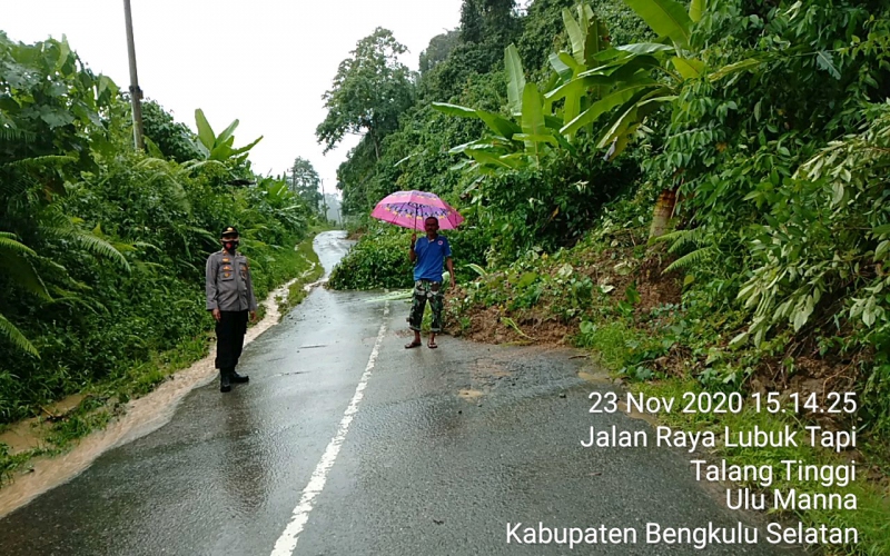 “Terjadi lima titik longsor yakni 2 Titik di Desa Bandar Agung Kecamatan dan 3 Titik di Desa Merambung Kecamatan Ulu Manna Kabupaten Bengkulu Selatan, mengakibatkan jalan lintas penghubung Provinsi Sumatera Selatan dengan Provinsi Bengkulu putus total”, tegasnya.