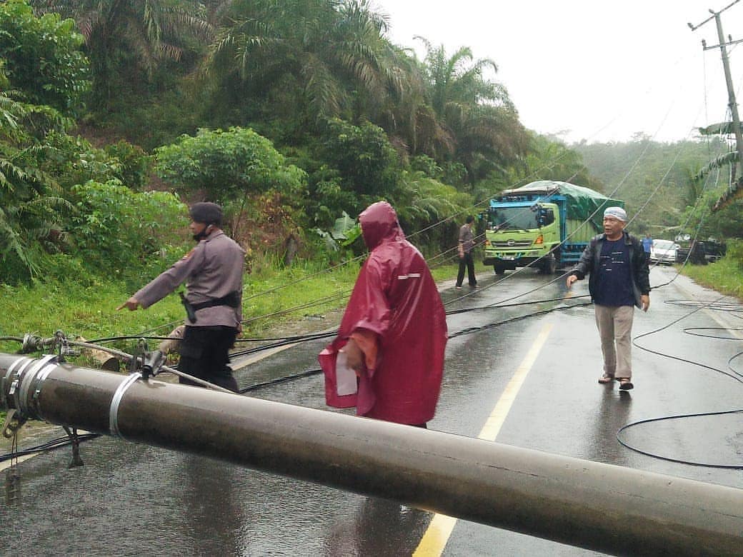 Bengkulu, Siberindo.co – Tim Siaga Aman Nusa II Bencana Alam Polres Seluma Polda Bengkulu mendatangi lokasi robohnya 2 tiang listrik di Jalan Lintas Seluma-Manna, di Desa Talang Sali Kecamatan Seluma Kabupaten Seluma, Kamis (24/12/2020).